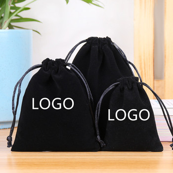Tas kantong beludru perhiasan tali serut hitam kustom dengan Logo tas perhiasan tas kantong perhiasan Microfiber tas kantong perhiasan